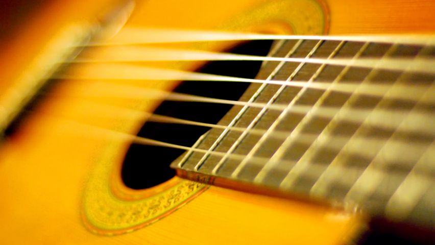 Ensina Parâmetros do som, O funcionamento do violão, A primeira música no...